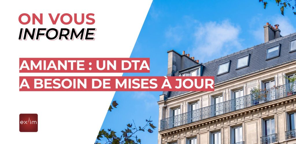 Oui, en matière d’amiante, la réglementation est souvent complexe. Alors pour savoir si votre bâtiment est soumis au DTA, si votre dossier est correctement mis à jour, ou tout simplement parce que vous avez un doute, n’hésitez pas à vous rapprocher d’un cabinet Ex’im. Le conseil fait aussi partie de notre métier. Même si ce DTA relève de la responsabilité du propriétaire, nous sommes là pour vous accompagner.