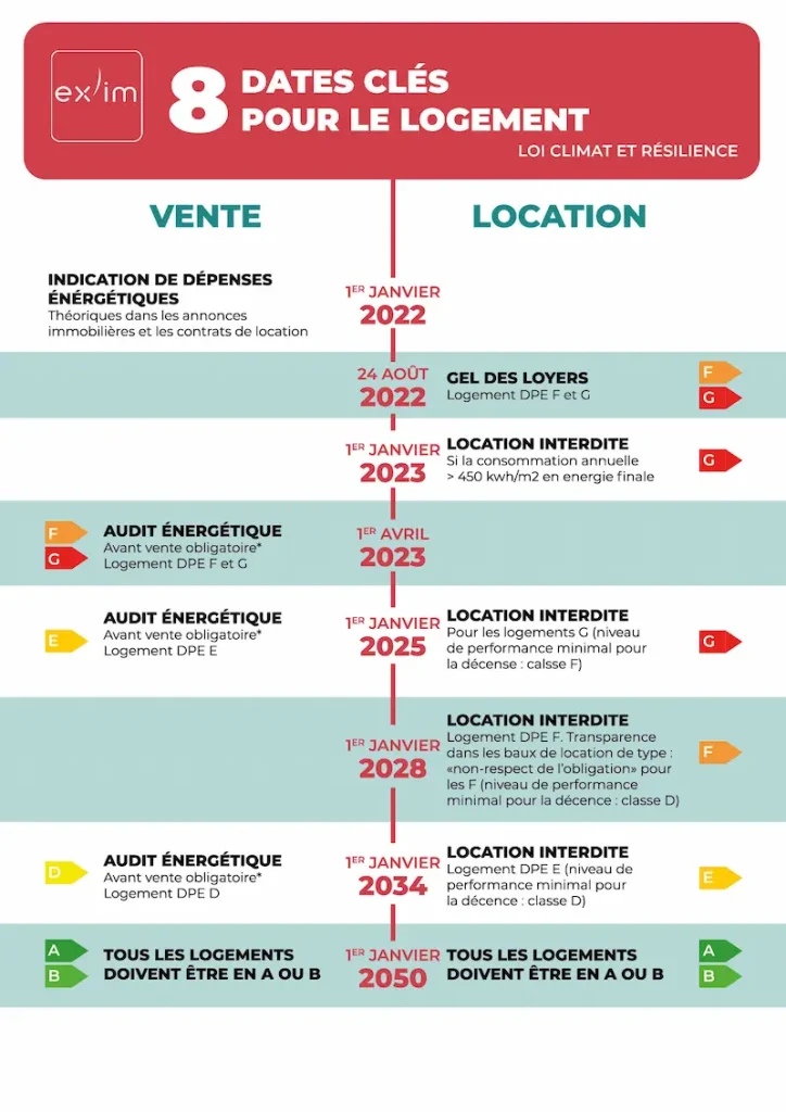 Il est obligatoire pour les propriétaires vendeurs de maison ou d’appartement en monopropriétés, classés F ou G. Depuis le 1er janvier 2025, il est aussi obligatoire pour les logements classés E. Il sera aussi obligatoire pour les logements en vente classés D au 1er janvier 2034.